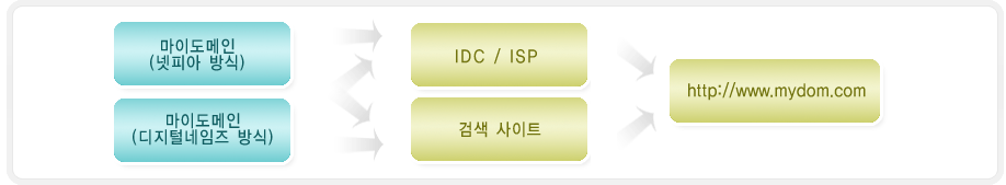 | (3) 키워드 서비스 : 한글인터넷주소와 디지털네임즈 방식의 키워드 서비스의 경우 계약을 맺은 IDC/ISP 또는 검색사이트를 통해 해당 도메인으로 포워딩되는 서비스로 많은 사용자가 이용하고 있으나 아직 표준화가 이루어지지 않아 접속이 정상적으로 이루어지지 않는 경우가 있습니다. |