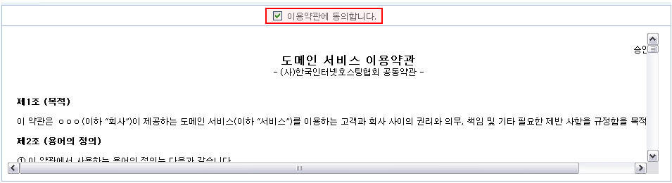 * 이용약관에 동의하여지만 도메인의 신규신청이 가능합니다. |