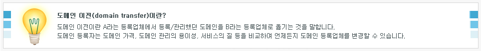 도메인 등록자는 먼저 옮겨 가고자 하는 등록업체에 도메인 이전을 신청합니다. |